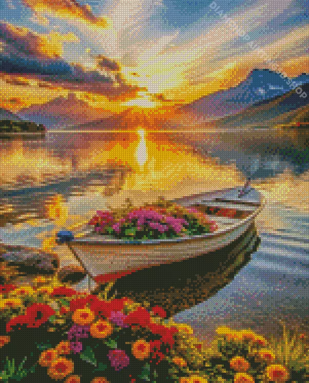 Flowers In Boat Diamond Painting